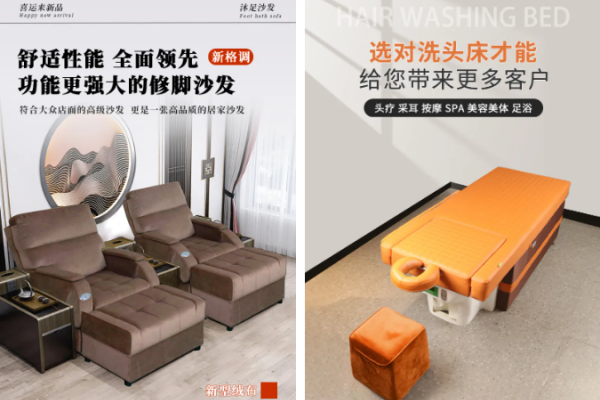 足浴沙发、按摩床、采耳床、洗头床等全线产品,优选高端防水面料、加厚镀锌钢管、进口高回弹海绵,支持功能与外观深度定制,产品耐用性提升50%,使用寿命行业领先。