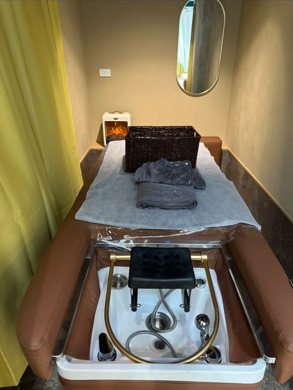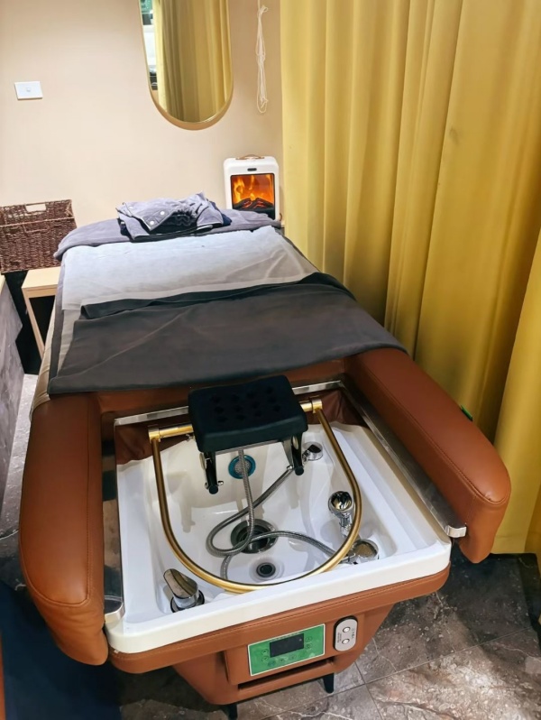 喜运来洗头床已完全融入therapure.Spa的宁静氛围中。柔和的灯光下,洗头床流畅的线条与整体空间设计相得益彰。理疗师反馈操作区域设计合理,所有控制按钮触手可及,大大提升了服务流畅度。